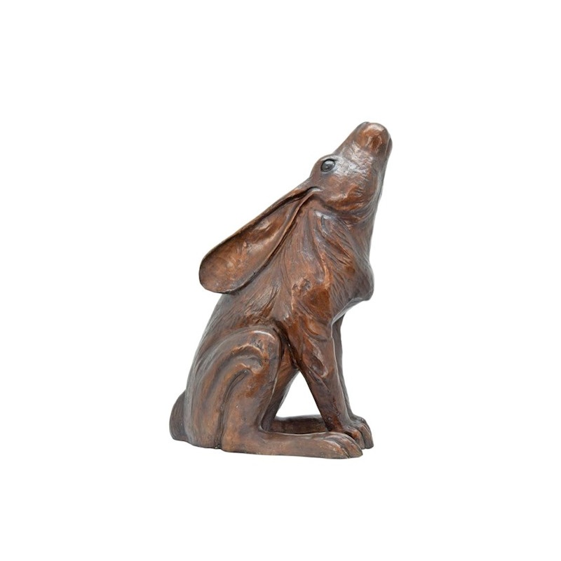 O statueta din bronz masiv ce prezintă un iepure asezat, surprinzând naturalețea și grația acestui animal.