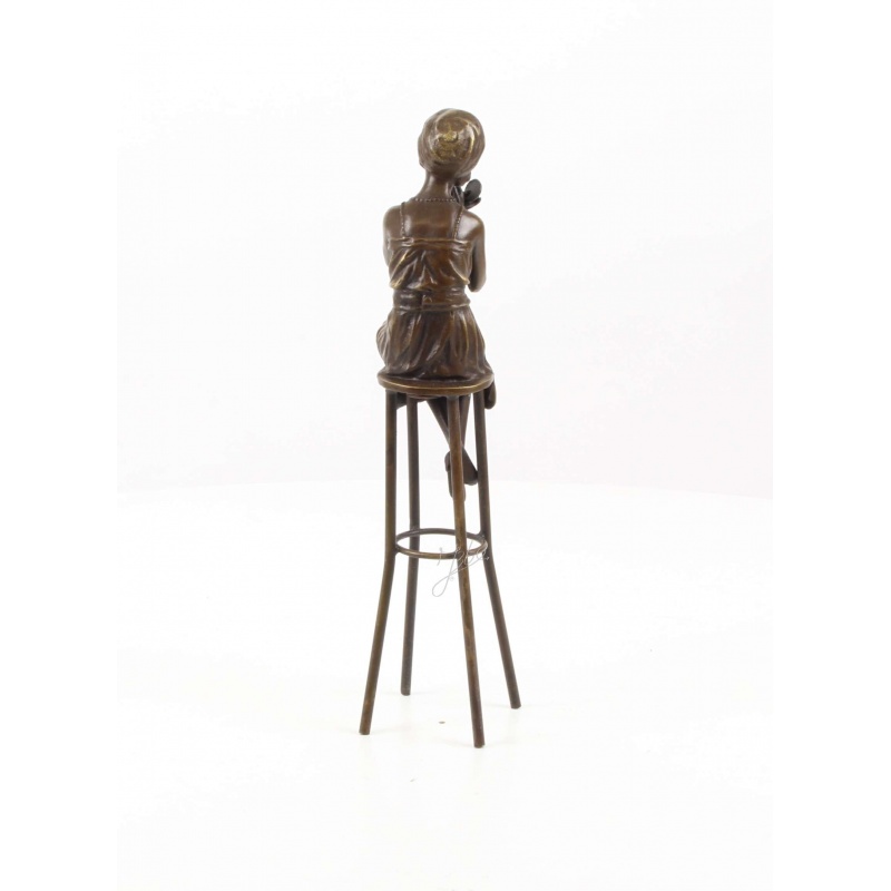 O superba statueta Art Deco din bronz masiv pe un soclu din marmura, ilustrand o fetita numita"Micuta rosie".
