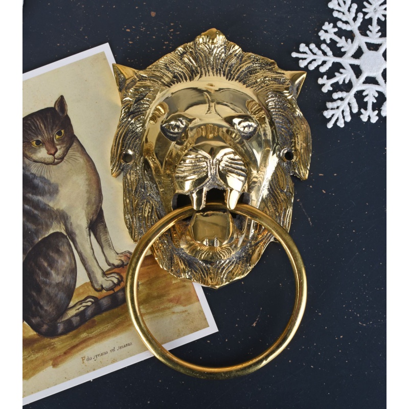Un frumos batator pentru usa din alama masiva cu finisaj auriu si inel.