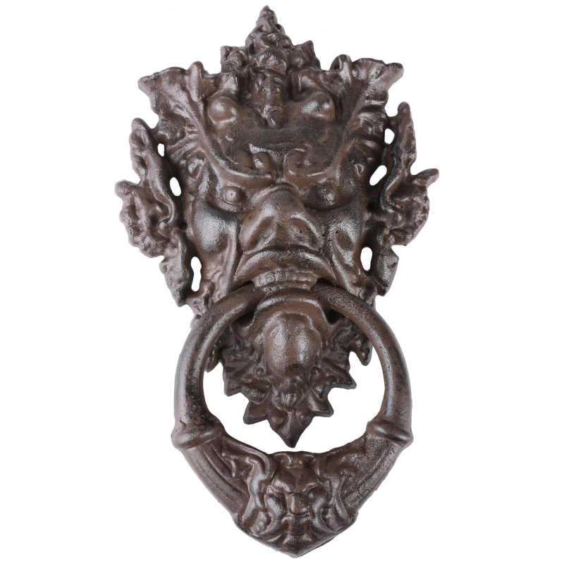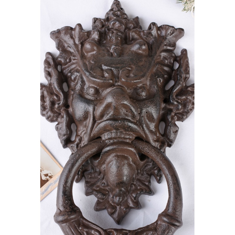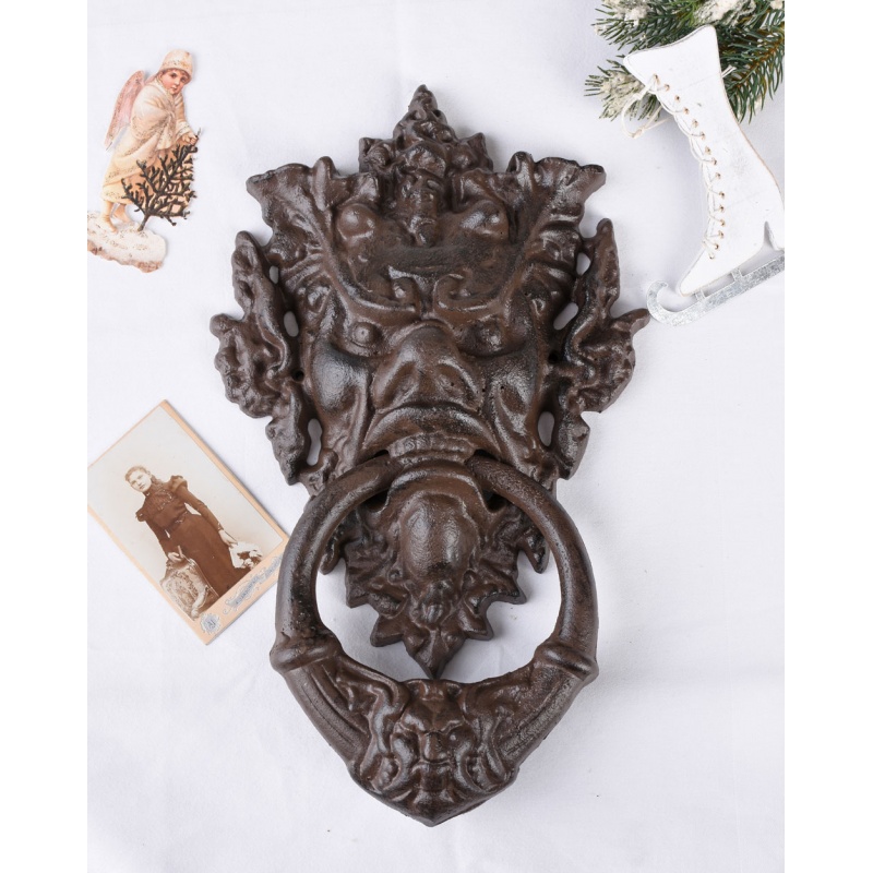 Un batator usa din fonta antichizata cu un décor cap de diavol.