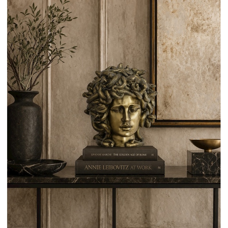 O statueta din rasini speciale de inalta calitate care infatiseaza capul Medusei, una dintre cele trei Gorgone, inspirata din mitologia greaca.