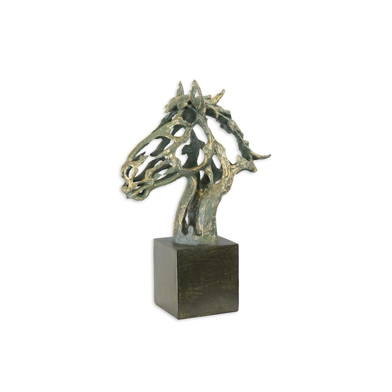 Un frumos cap de cal stilizat pe un soclu patrat, realizat din rasini speciale de inalta calitate, cu un aspect contemporan.