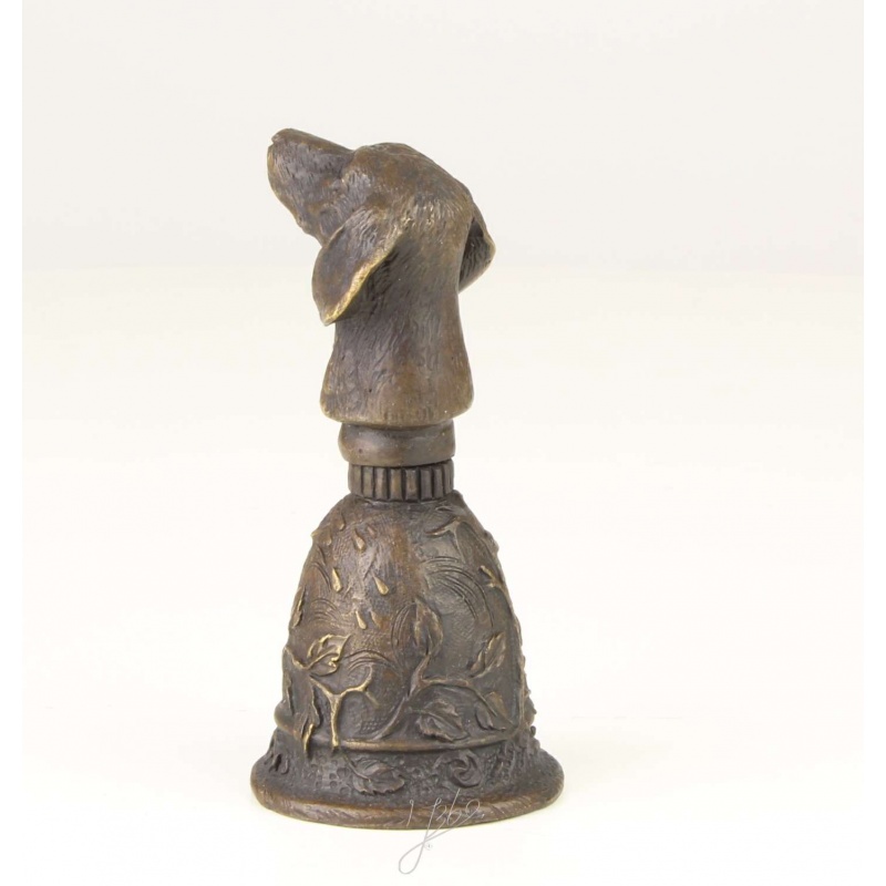 Un frumos clopot de masa din bronz masiv decorat cu un cap de caine.