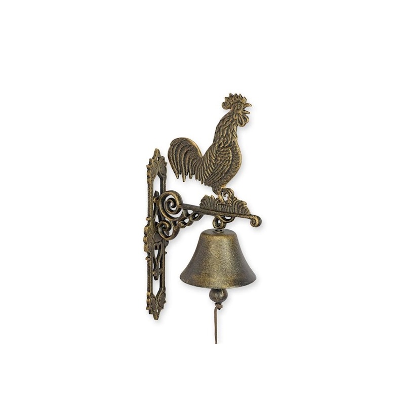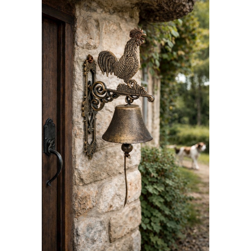 Un interesant clopot pentru usa din fonta masiva cu finisaj bronz, realizat sub forma unui cocos, ce imbina farmecul rustic cu functionalitatea practica.
