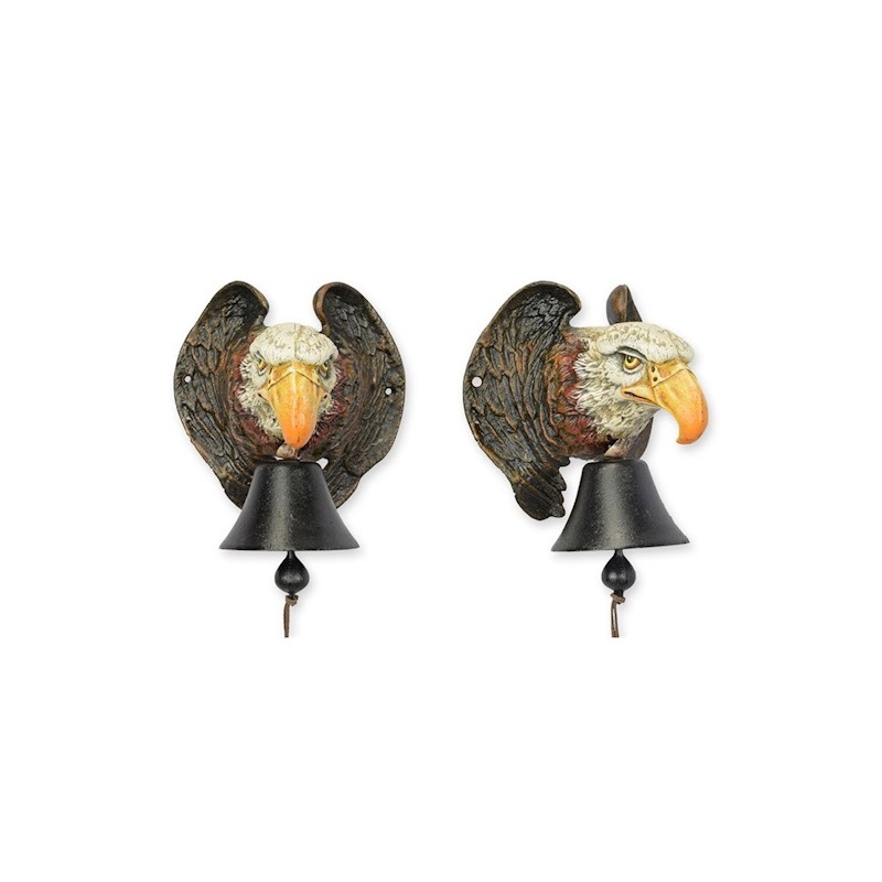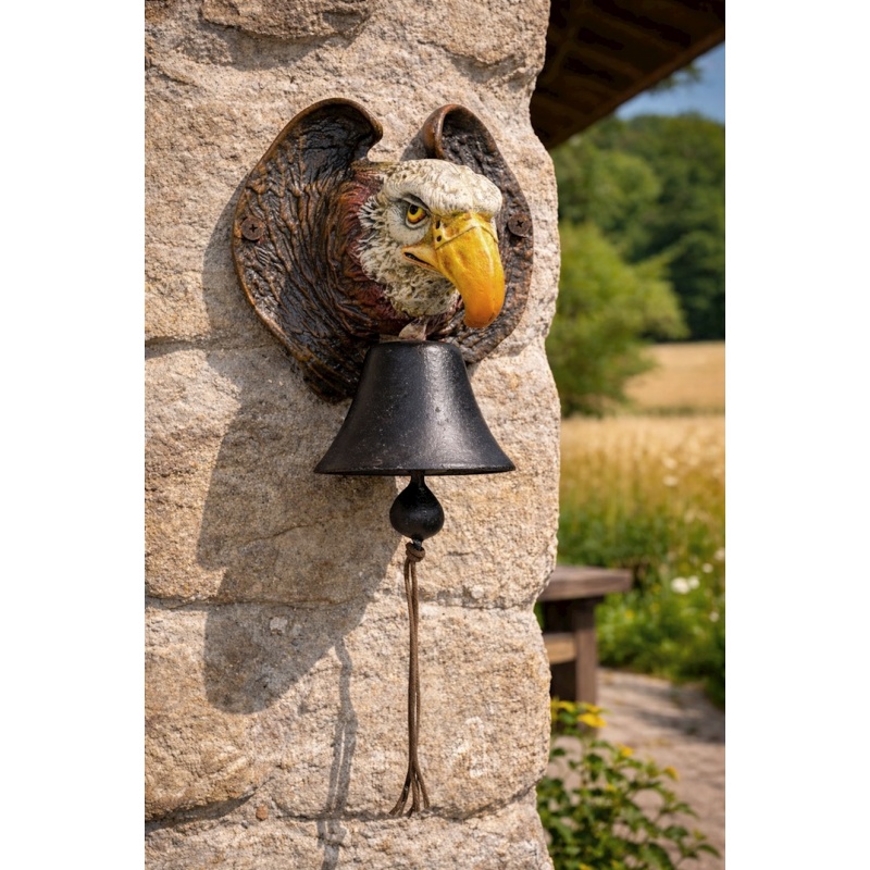 Un clopot decorativ din fonta pentru usa, cu design „cap de vultur”, ce impresioneaza prin prezenta sa puternica si detaliile atent realizate.