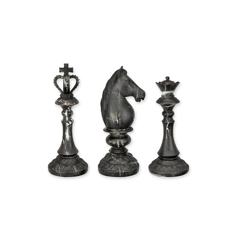 Un frumos set decorativ de trei piese de sah negru cu tuse albe(aspect marmura), realizat din rasini.