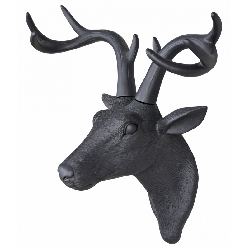 Un postament cu un cap de cerb negru din polystein, ideal pentru a infrumuseta un living sau dormitor.