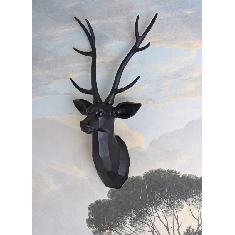 Un postament cu coarne de cerb din polystein negru, ideal pentru pus pe perete ca si décor.