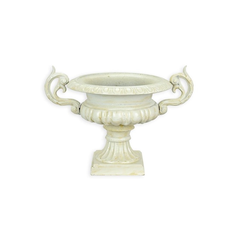 O amfora din fontă alba ce adaugă un farmec atemporal oricărui spațiu interior sau exterior.