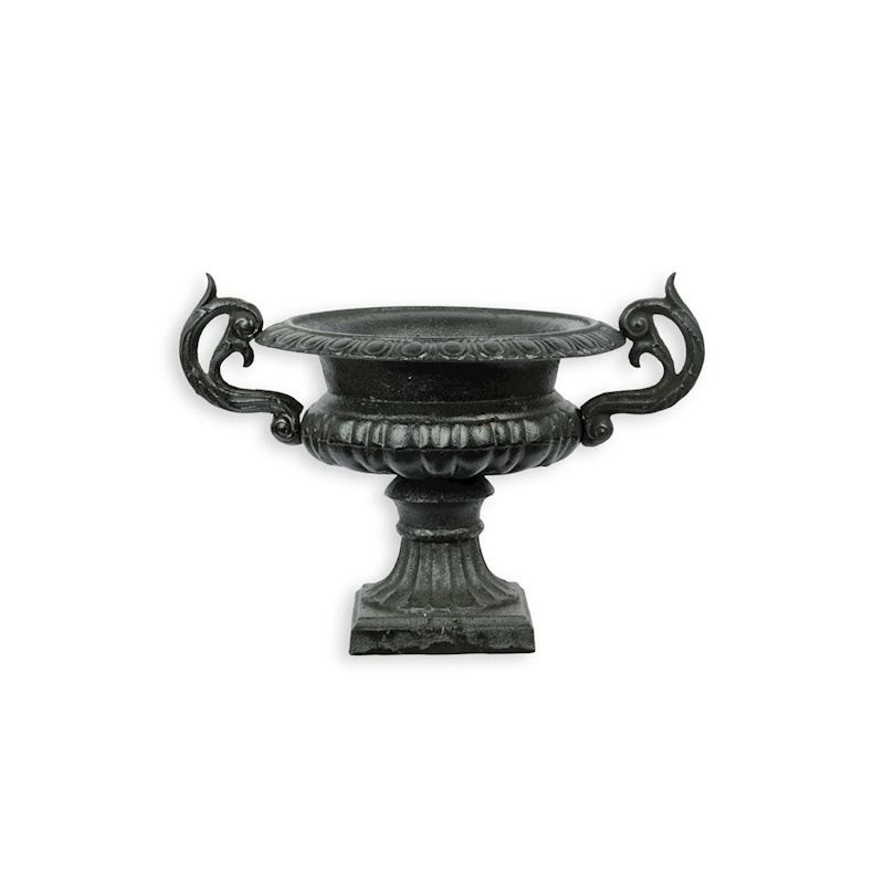 O amfora din fontă neagra, sofisticată și durabilă, ideală pentru a adăuga un aer elegant și rafinat spațiilor interioare sau exterioare.