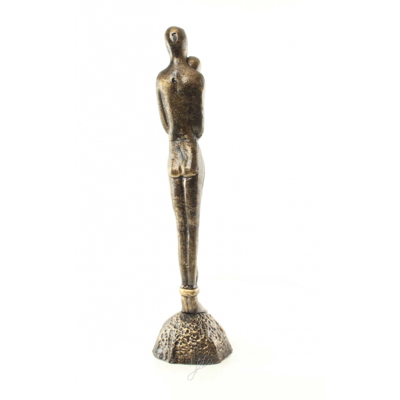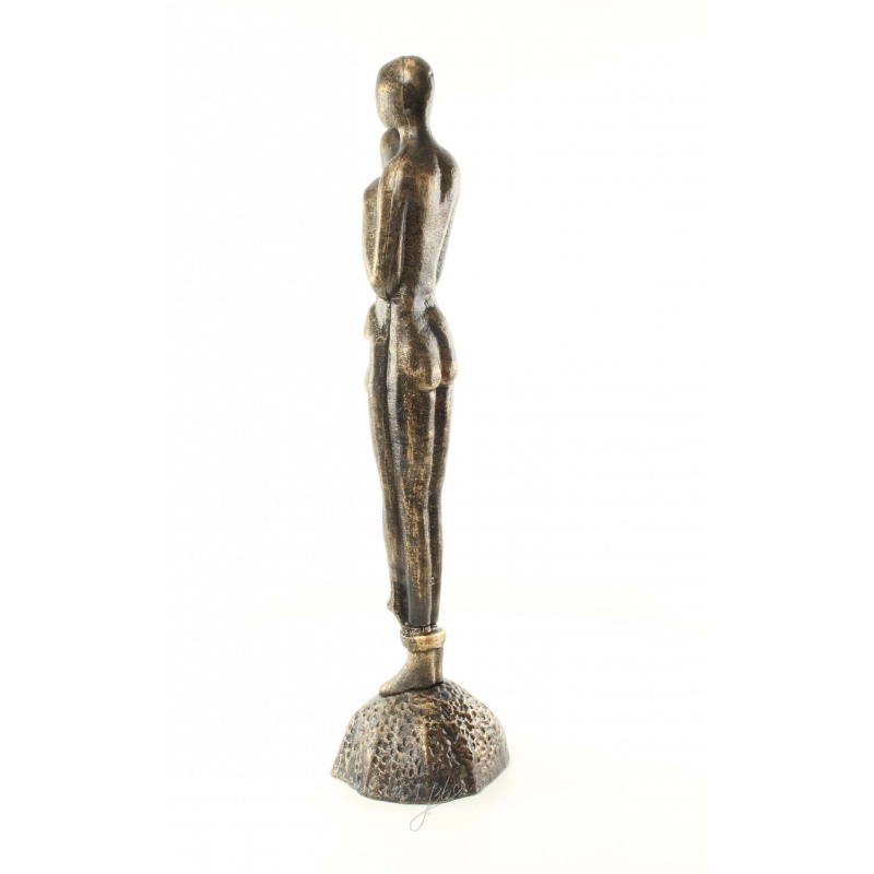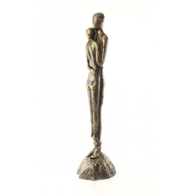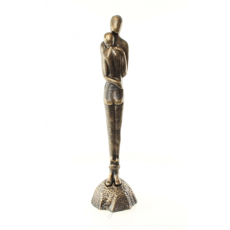O statueta din fonta masiva cu finisaj bronz ilustrand un cuplu imbratisat stilizat.