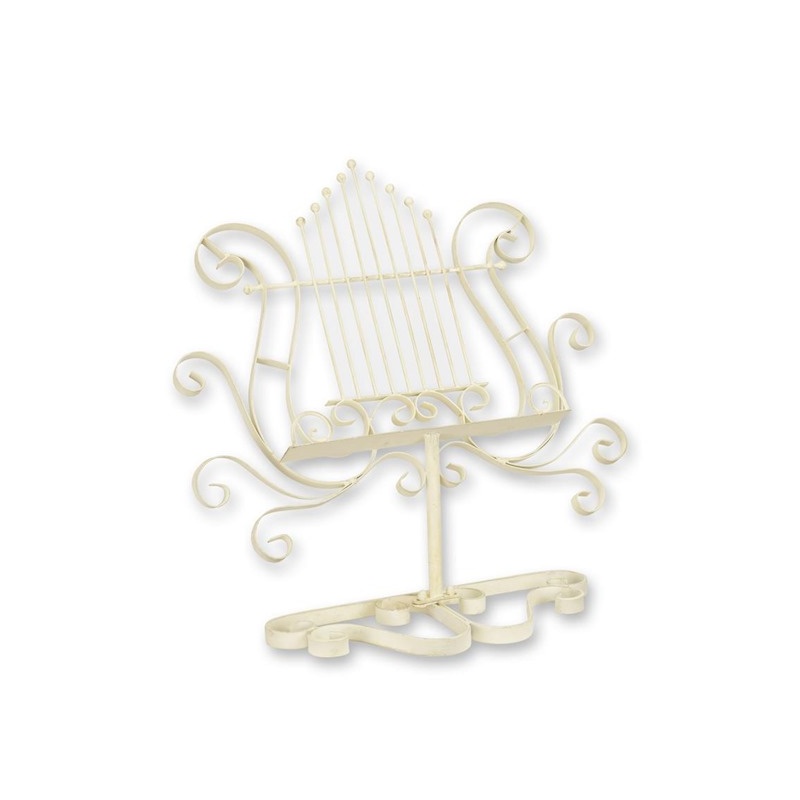 Un suport realizat din fier forjat antik white, destinat pentru a sustine partituri muzicale sau meniuri.