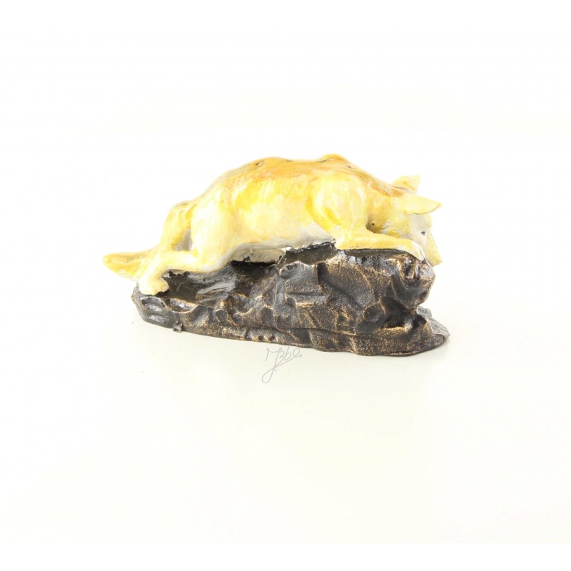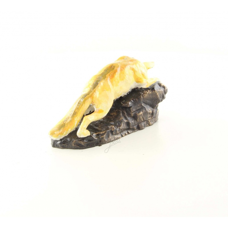 O frumoasa figurina decorativa din fonta masiva, turnata si pictata integral manual ce infatiseaza o vulpe tarandu-se.