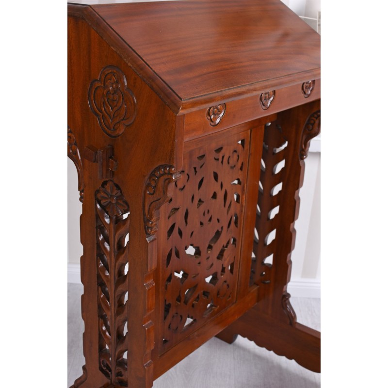 O banca pentru biserica din lemn mahon, o piesa deosebita pentru un living ideala pentru cafele.Banca este lucrata integral manual, foarte solida si impunatoare, potrivita pentru decorarea unei biserici.