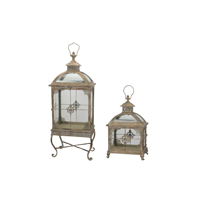 Un set format din doua felinare din metal auriu cu finisaj mat si sticla transparenta.