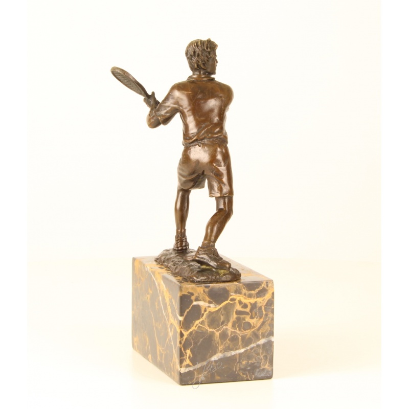 Jucator de tenis - statueta din bronz pe soclu din marmura