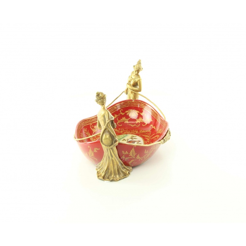 Fructiera din portelan cu doua nimfe din bronz