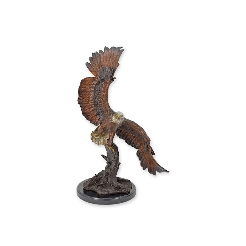 O statueta din bronz masiv cu un soclu din marmura ce reprezintă un vultur majestuos pe o buturga.