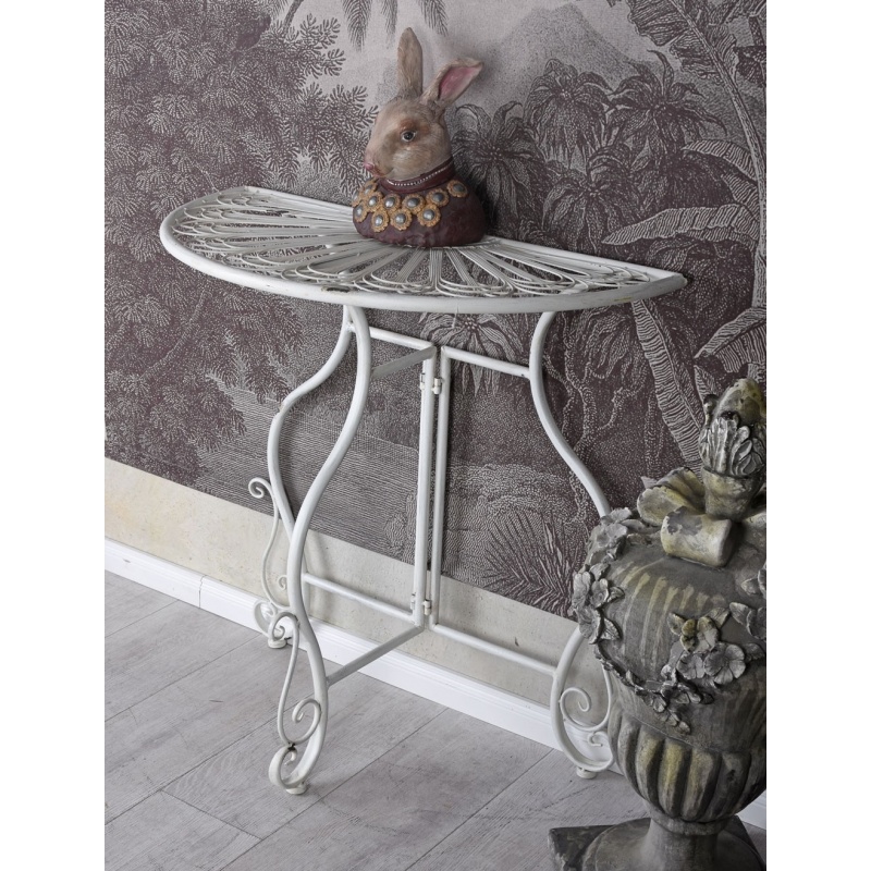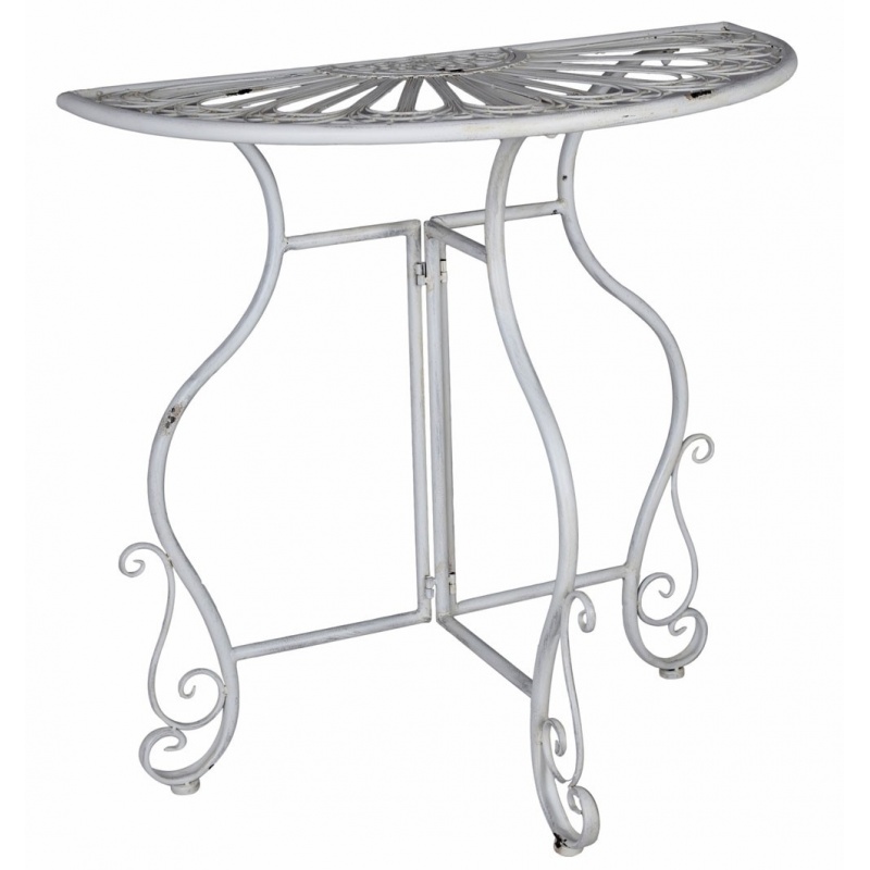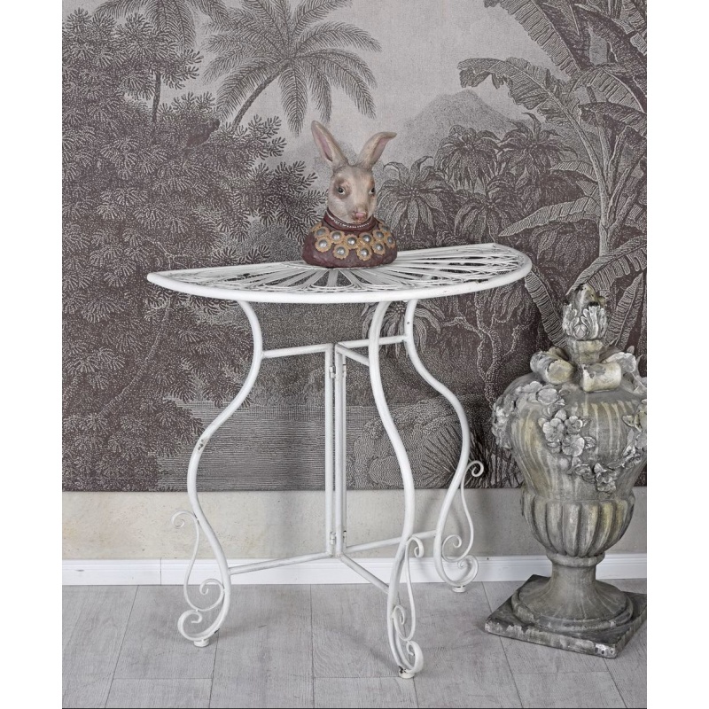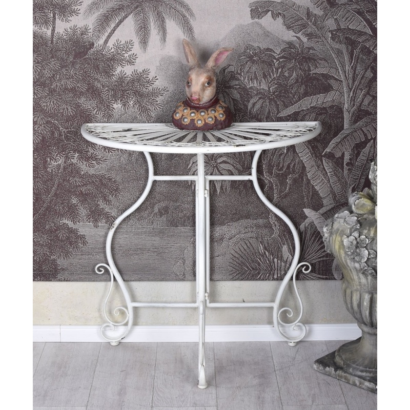 O consola din fier forjat antik white cu picioare cu modele deosebite.