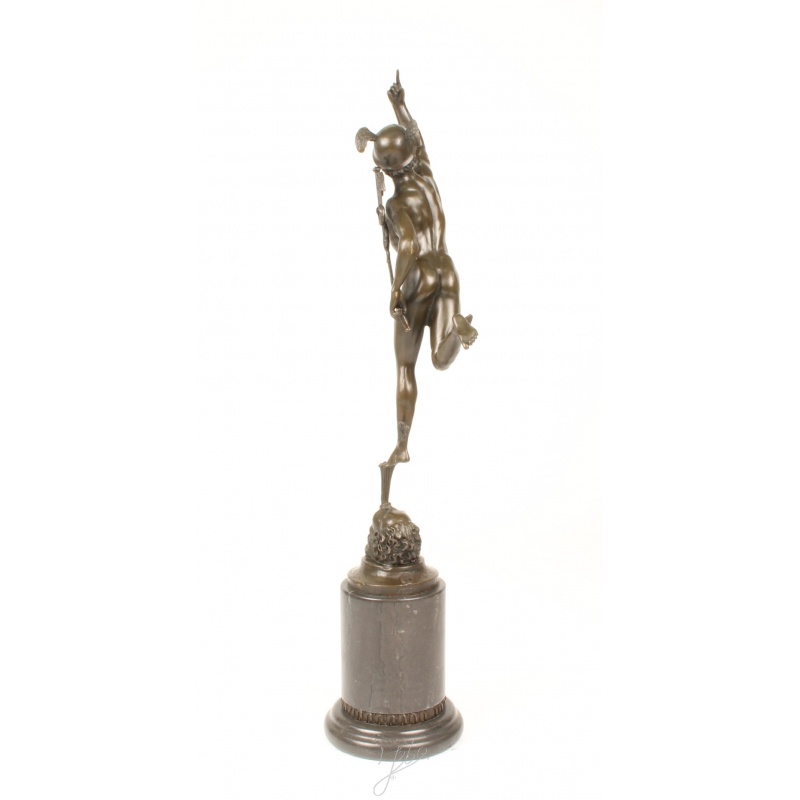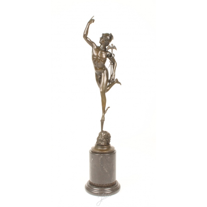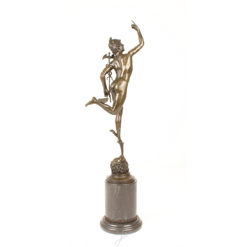 O inedita statueta din bronz masiv cu un soclu din marmura neagra reprezentandu-l pe Mercur.