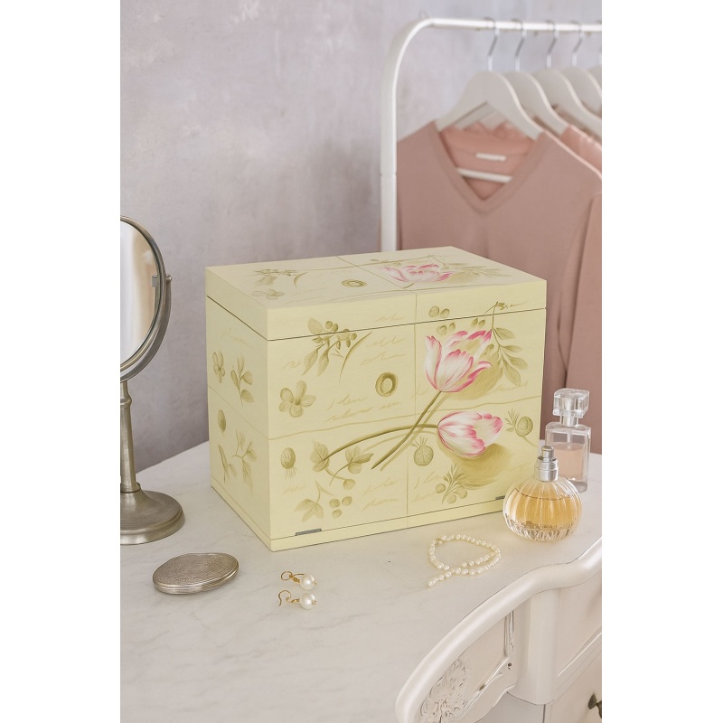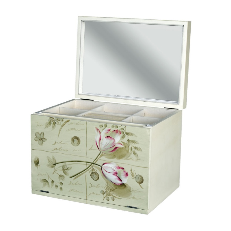 Caseta de bijuterii din lemn masiv cu flori