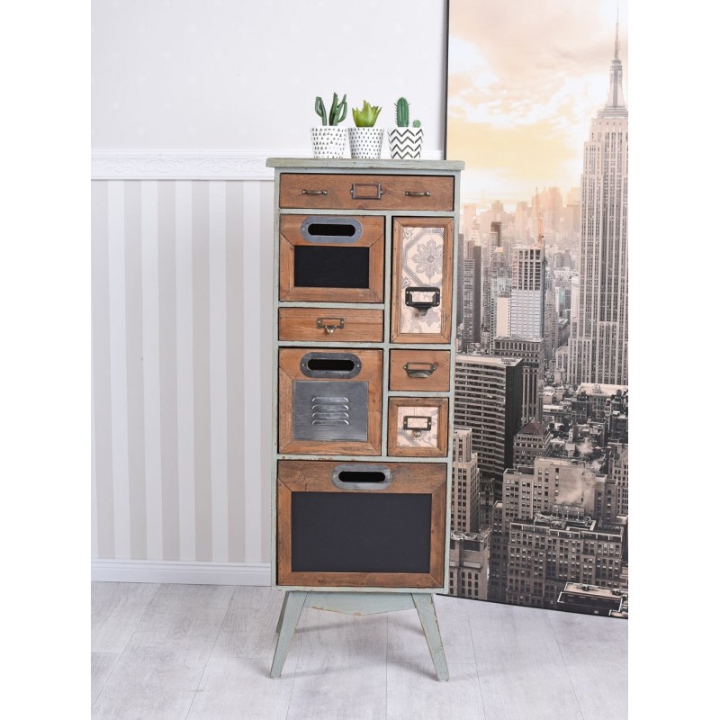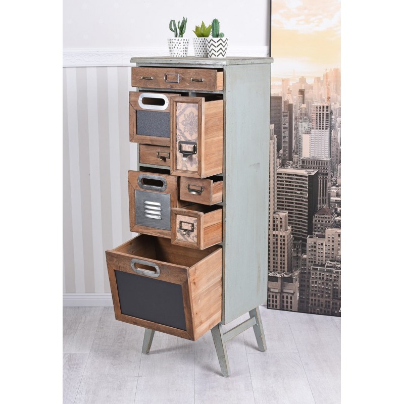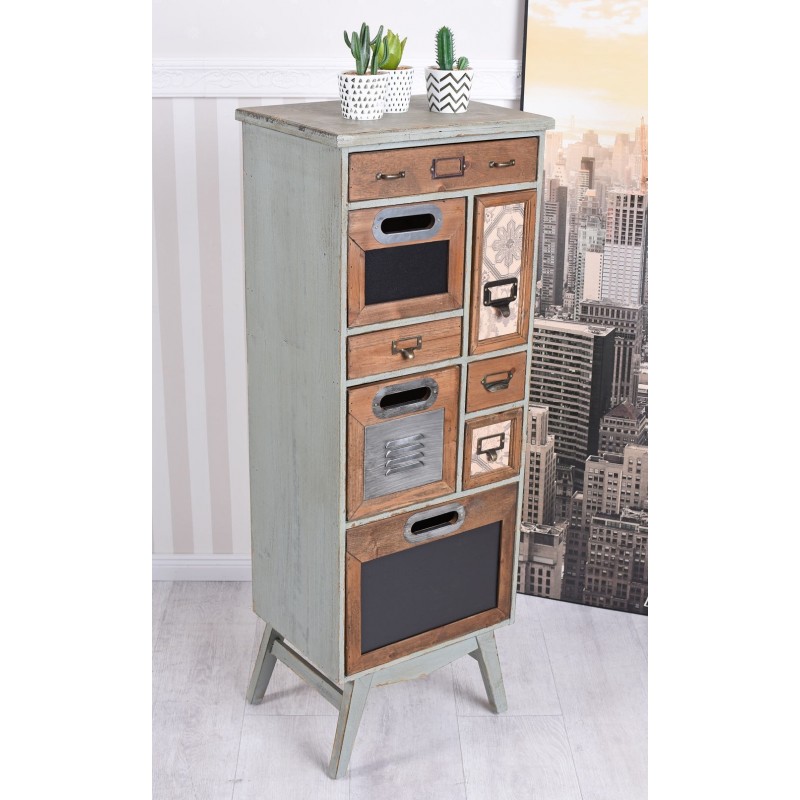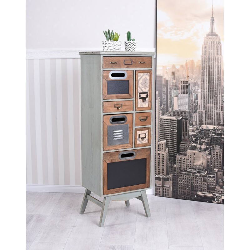 Comoda industriala din lemn masiv verde cu sertare