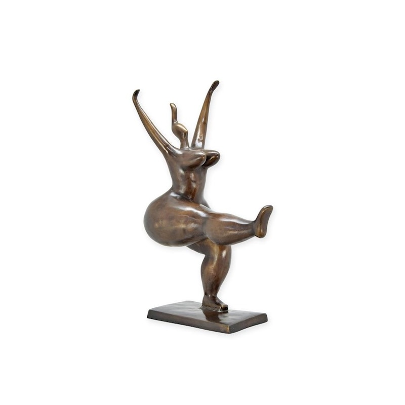 O moderna statueta din bronz masiv ilustrand o dansatoare nud pe un soclu patrat din marmura