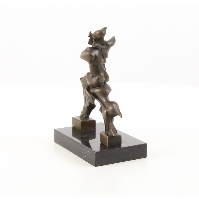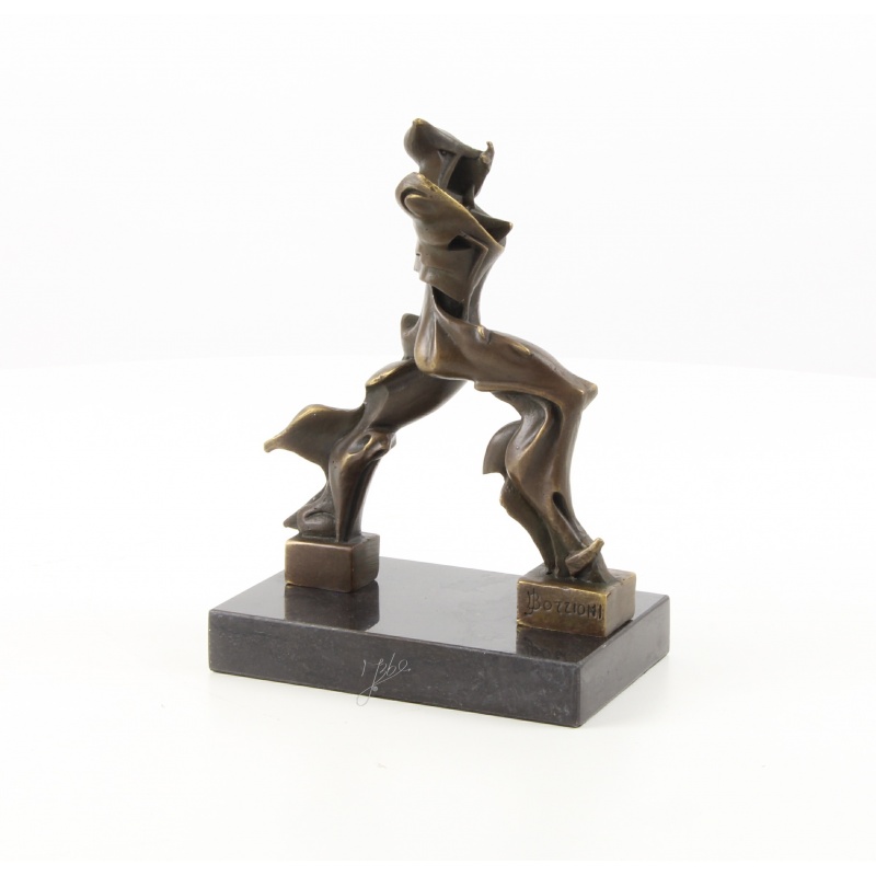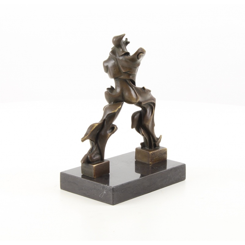 O statueta moderna din bronz masiv pe un soclu din marmura neagra, denumita "Forme unice de continuitate in spatiu".