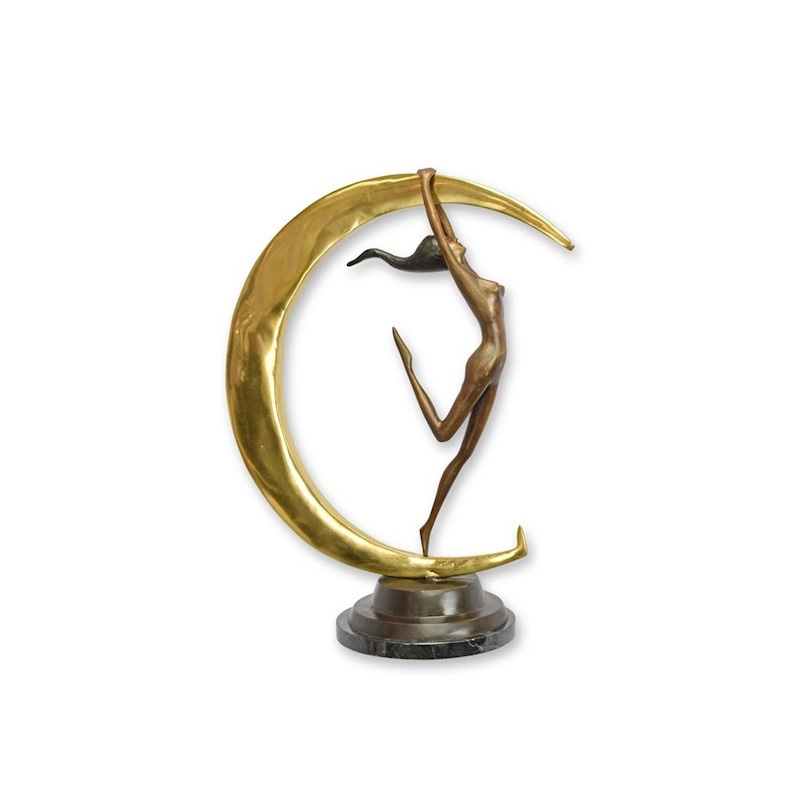 O statueta din bronz masiv, cu un soclu din marmura, ce infatiseaza o femeie nud incadrata intr-o semiluna.