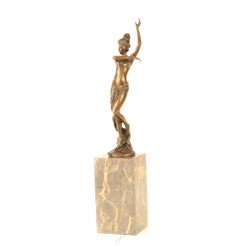 Dansatoare nud-statueta din bronz pe un soclu din marmura
