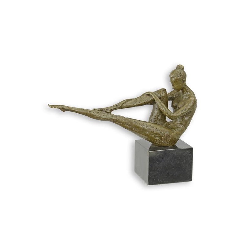 O superba statueta din bronz masiv cu un soclu din marmura neagra reprezentand o femeie goala facand gimnastica.