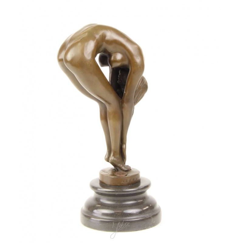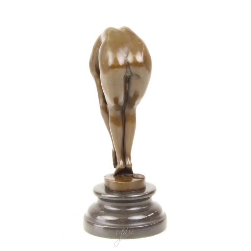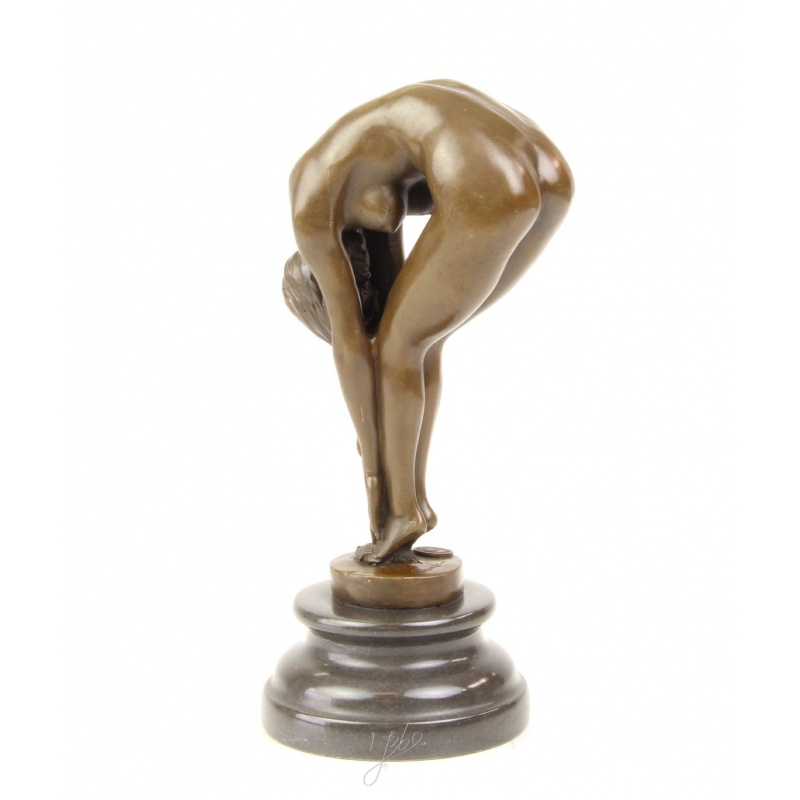 O superba statueta din bronz masiv cu un soclu din marmura neagra reprezentand o femeie aplecata.