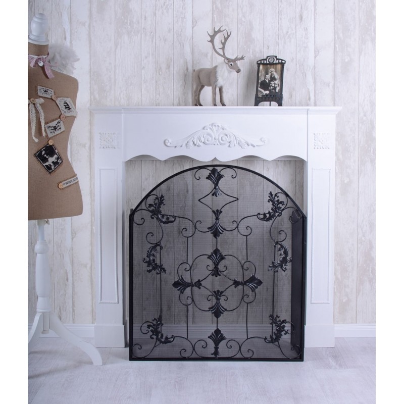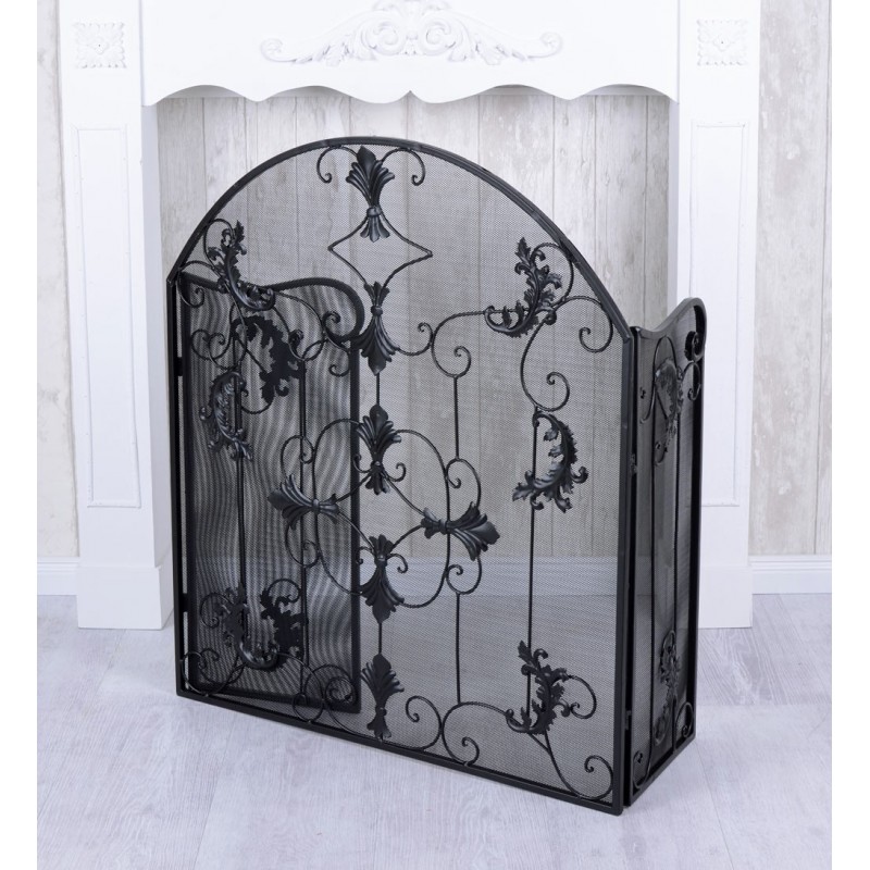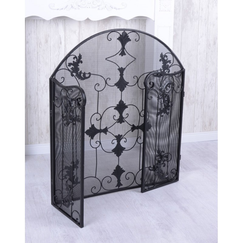 Un paravan pentru semineu din fier forjat antik brown cu diverse modele vegetale.