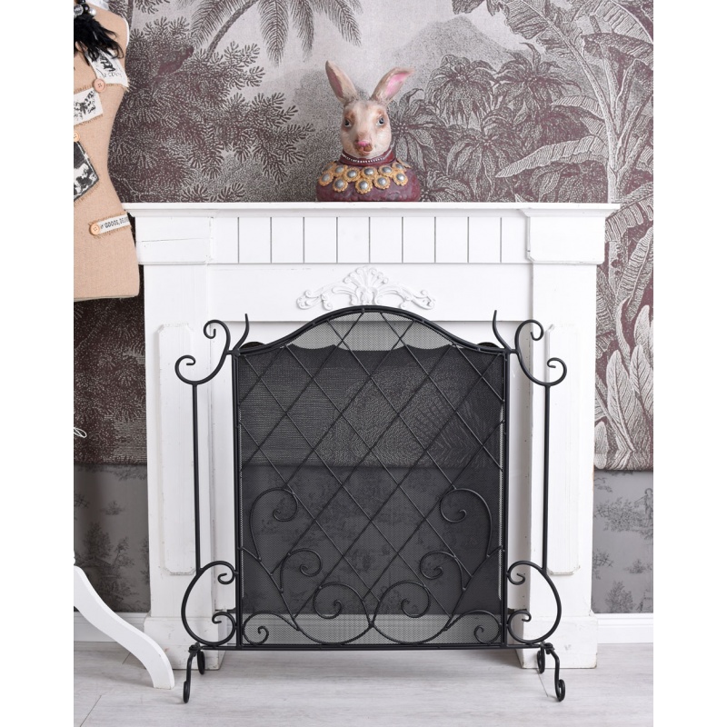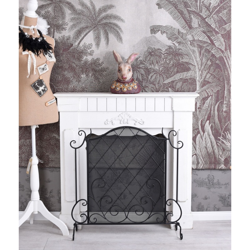 Paravan pentru semineu din fier forjat antik black
