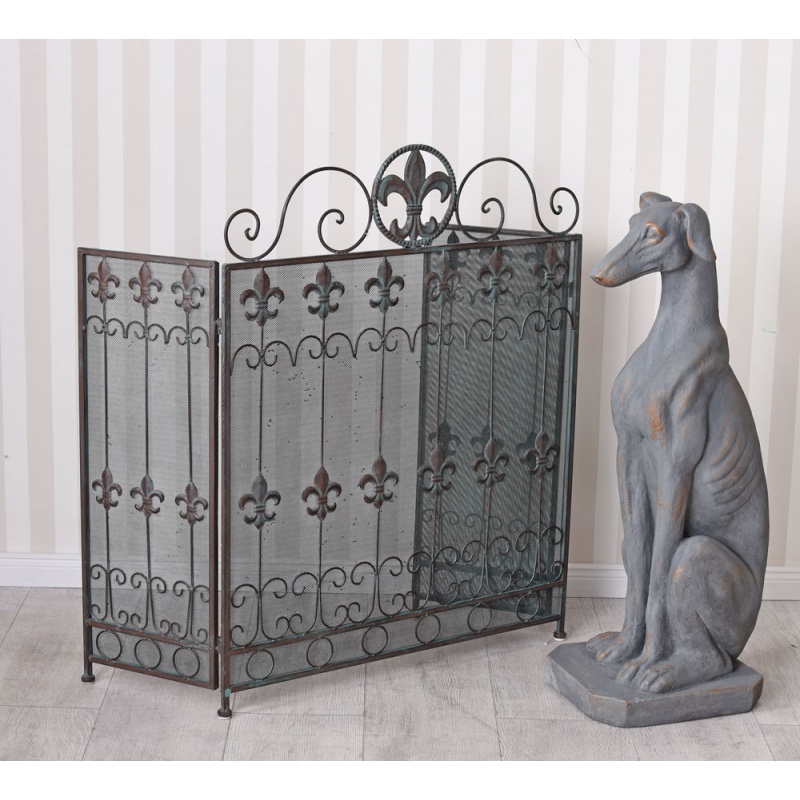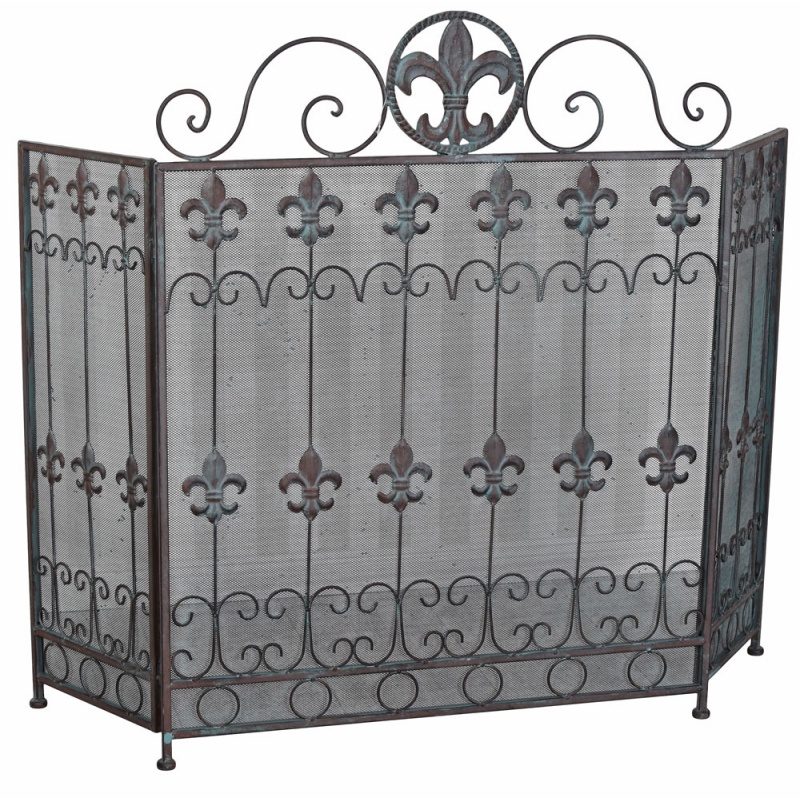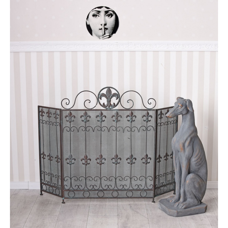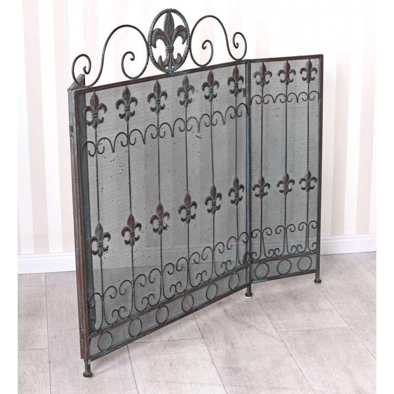 Un paravan pentru semineu din fier forjat antik black cu diverse modele florale si vegetale.