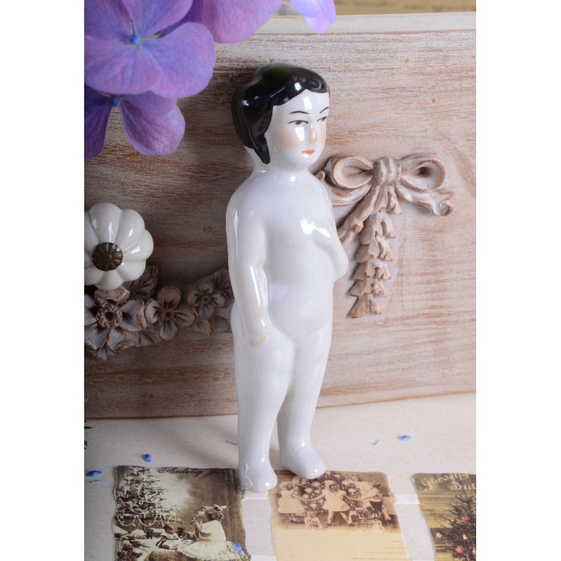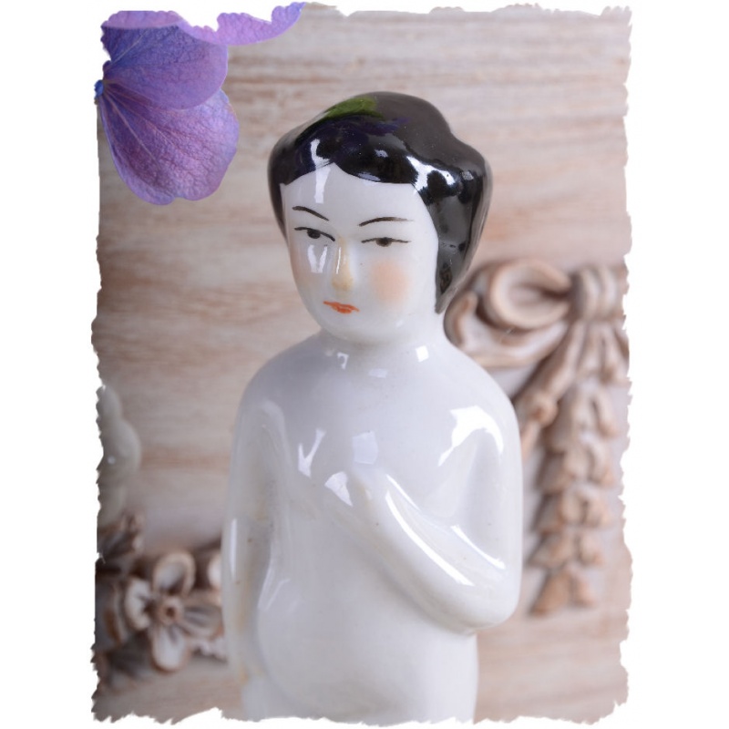 O papusica decorativa Shabby Chic realizata din portelan alb pictat.