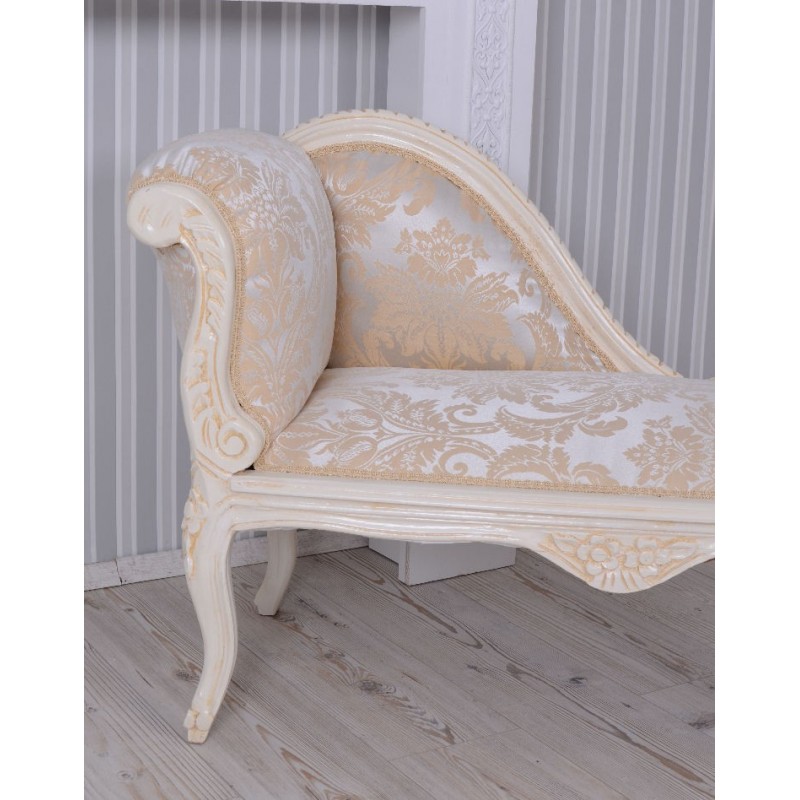 O sofa din lemn masiv alb cu tapiterie gri cu model bej.Ea este integral lucrata manual si este o piesa impunatoare si foarte solida. Sofaua este o piesa deosebita potrivita pentru a mobila un interior atat clasic cat si unul modern.