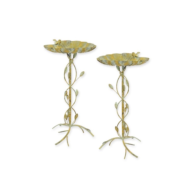 Un frumos set doua bai pentru pasarele, din fier forjat cu aspect patinat antik green.