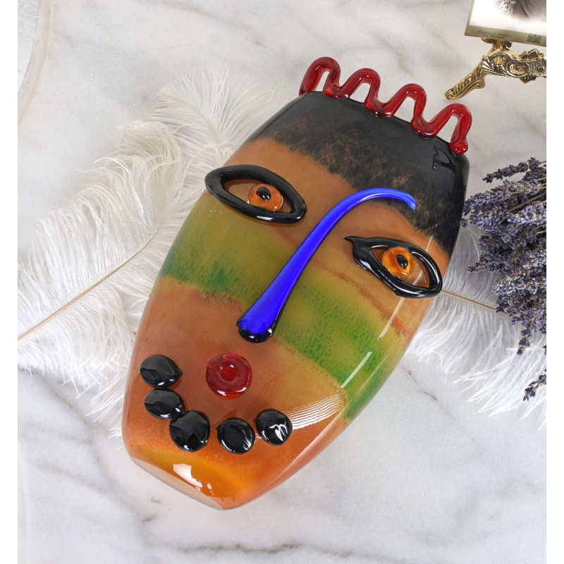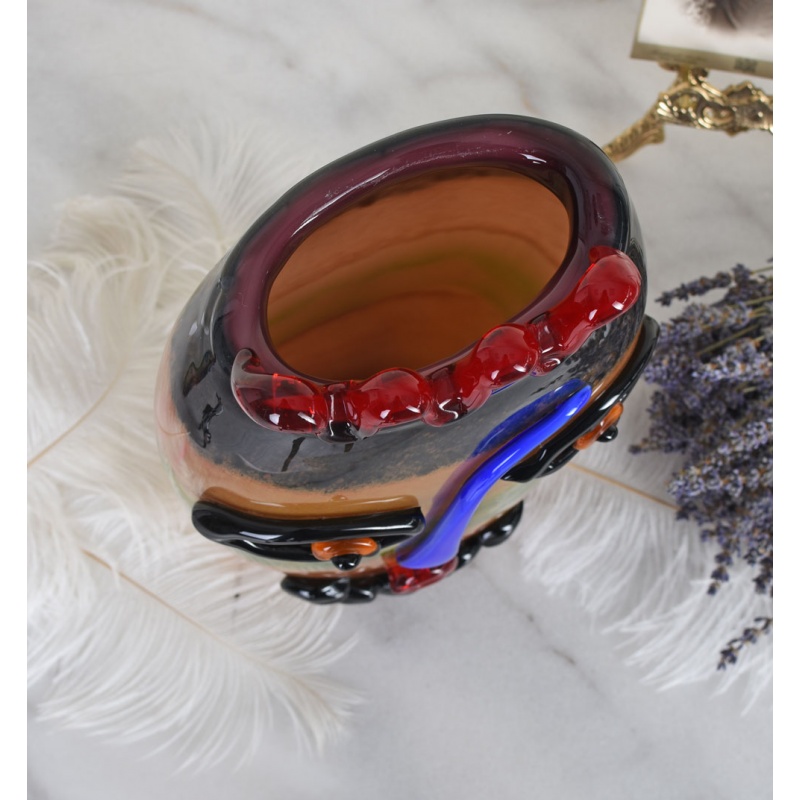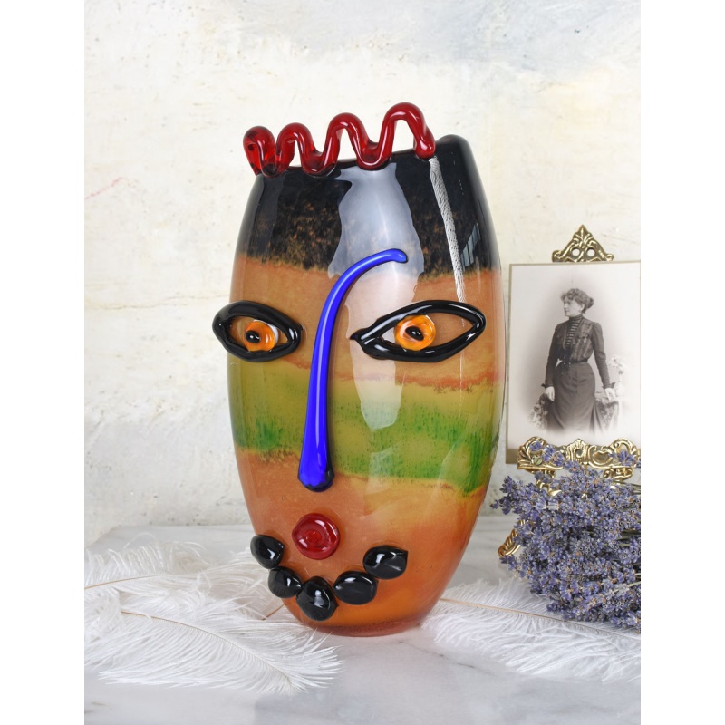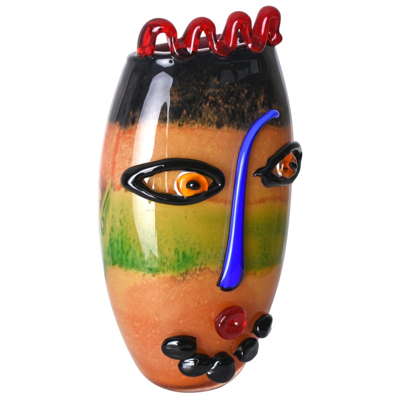 Un frumos vas decorativ din sticla Murano, ce infatiseaza intr-o maniera abstracta o fata umana.
