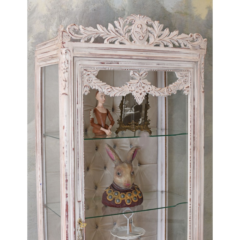 Vitrina baroc din lemn masiv alb
