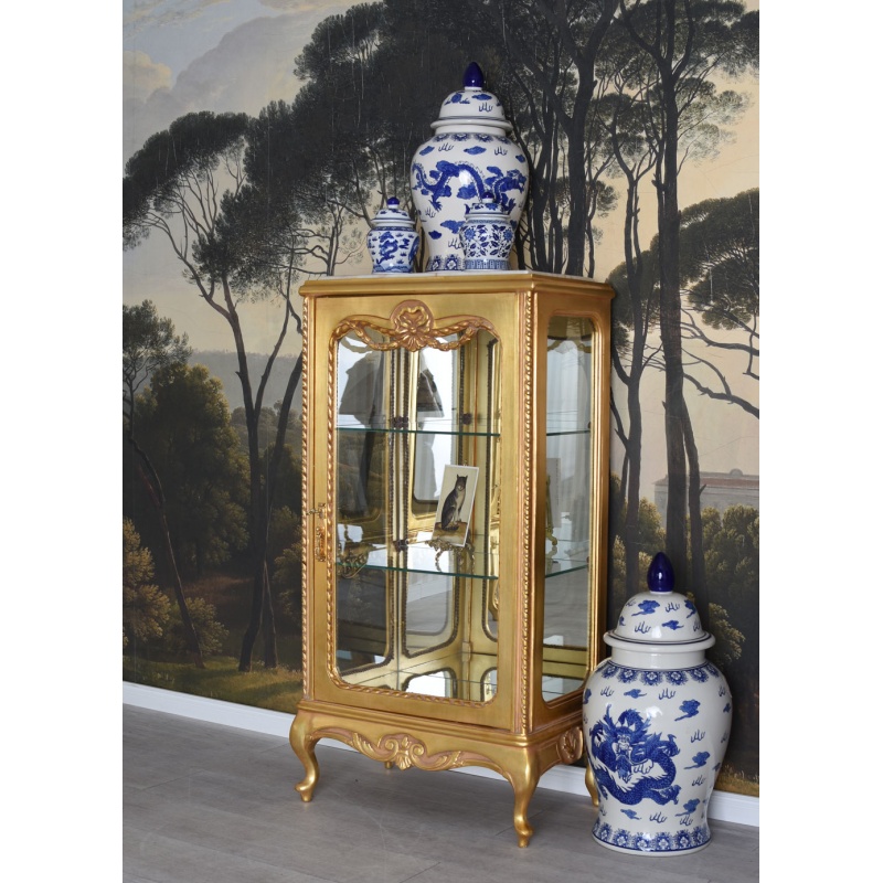 Vitrina Rococo din lemn masiv auriu